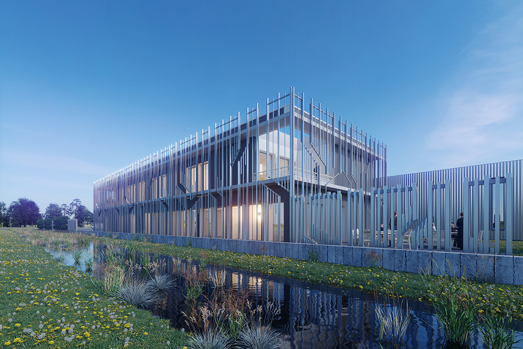 Implanté au cœur de la Haute-Saône, le bâtiment joue de reflets avec le paysage qui évoluer selon l’angle de vue.